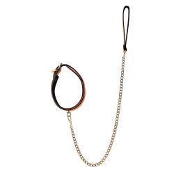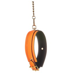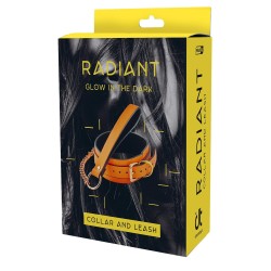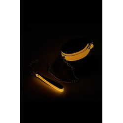 Collier et laisse en simili cuir phosphorescent vert avec détails dorés. Mousqueton à la laisse.