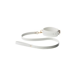 Collier et laisse en simili cuir avec détails dorés. Mousqueton à la laisse.