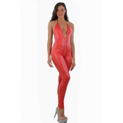 Combinaison manches longues en wetlook avec son col montant et son zip va et vient du col à l'entre jambes.