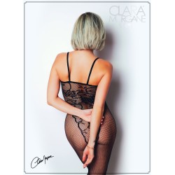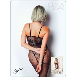 Bodystocking en résille avec ses fins motifs de fleurs sur la partie haute formant un body sexy. Ouvert entre jambes.