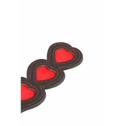 Paddle noir avec ses surpiqures rouges et ses trois coeurs rouges. Dragonne.
