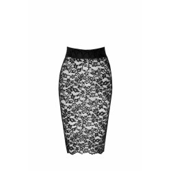 Jupe longueur midi en dentelle noire fermée par son superbe laçage à l'arrière.
